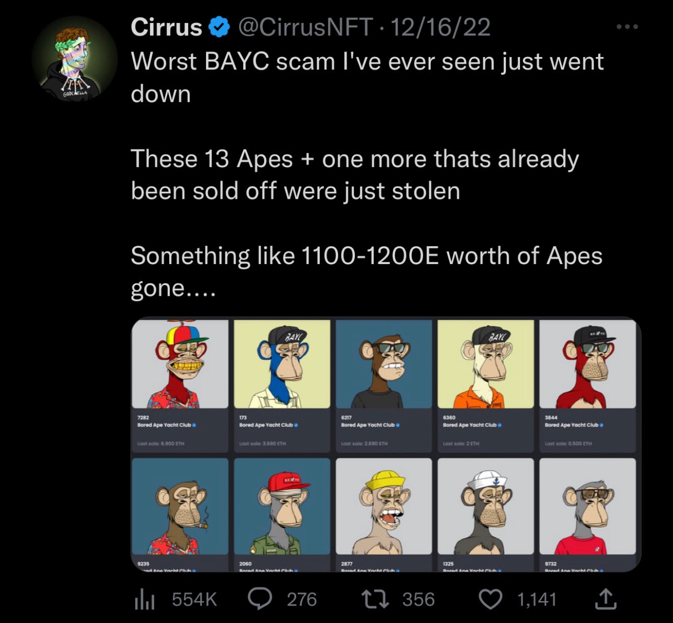 In December 2022, an unknown assailant purloined 14 Bored Ape Yacht Club NFTs, with each one valued at approximately $86,000 at the time of theft, as reported.